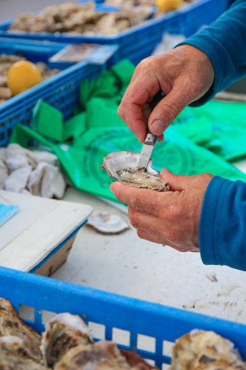 Le marché de l’Île Tudy célèbre la richesse de la mer et la générosité de la terre bretonne.