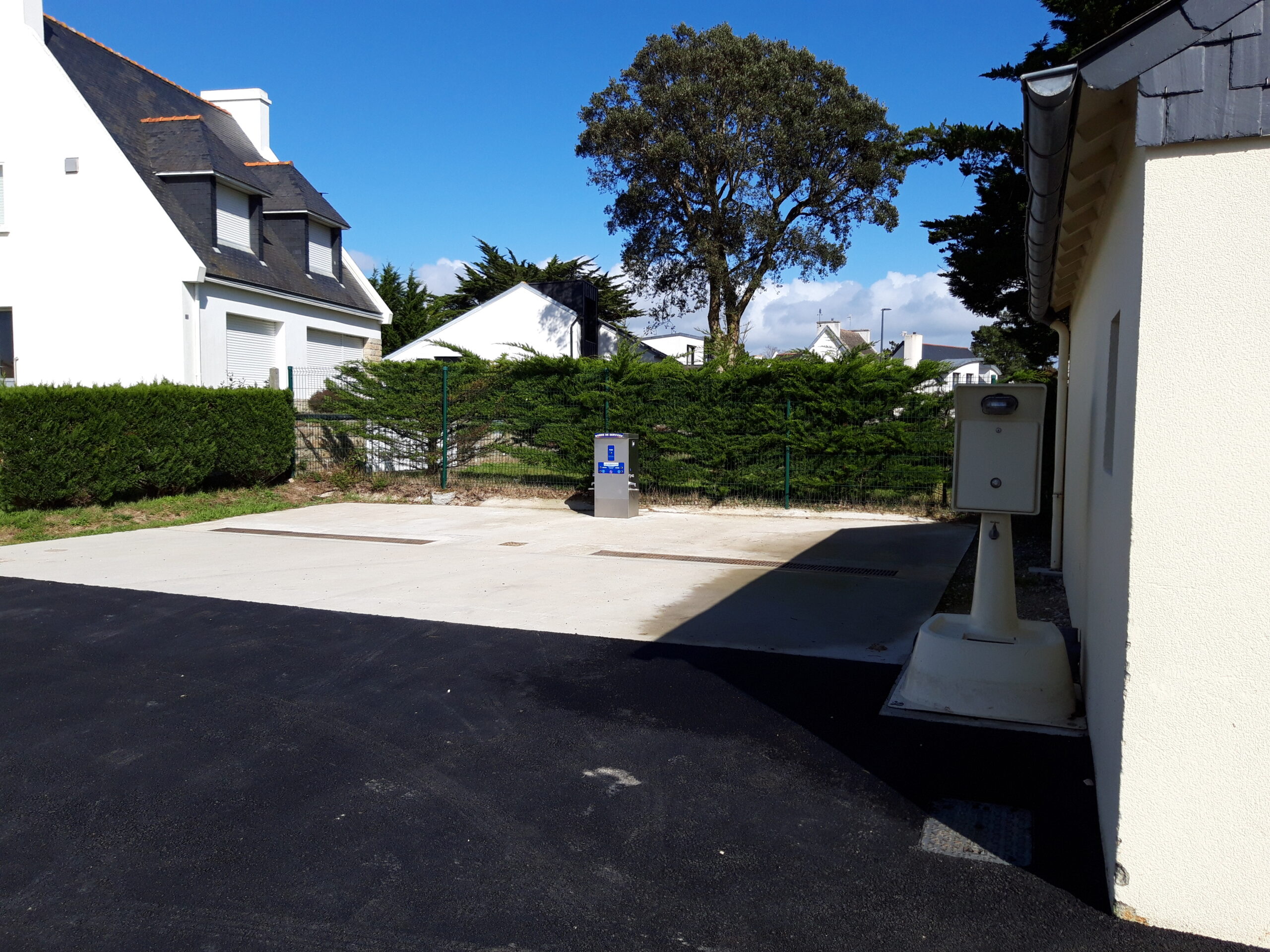 En dehors de la période d’ouverture du camping, l’aire de camping-car est accessible grâce à une borne et des barrières automatiques.